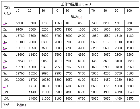 2.3 磁場強(qiáng)度: H≥0.5T,工作氣隙80mm時(shí)