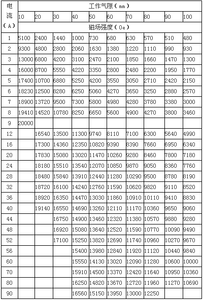3、磁場參數(shù)表
